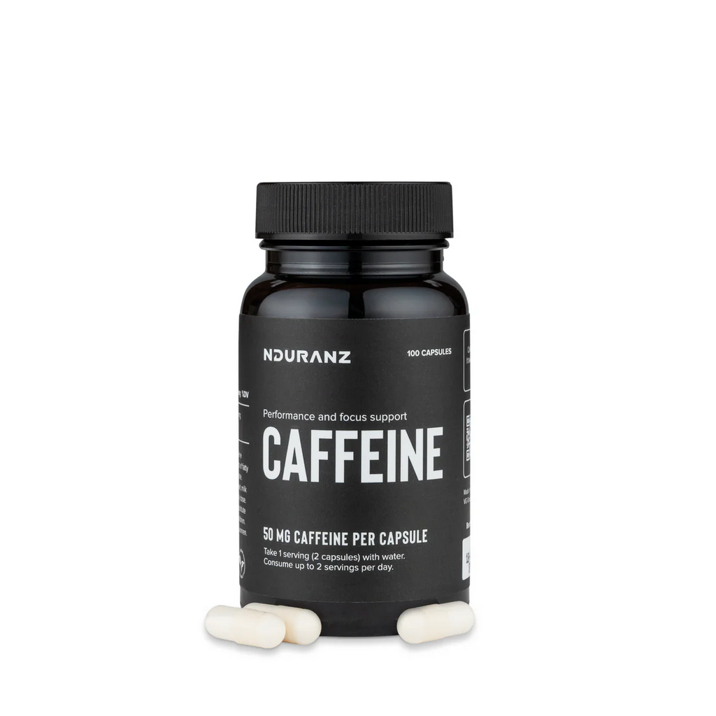 Each Nduranz Caffeine Capsule contains 50 mg of pure caffeine anhydrous, a fast-absorbing, high-quality form of caffeine that supports alertness, mental focus, and physical endurance. Ideal for athletes and active individuals, it helps you power through int