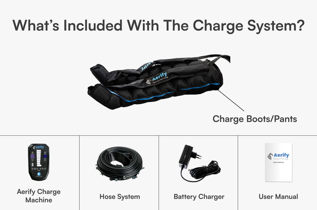 This isn’t your average massage boot. The Aerify Charge Compression System is the most powerful, customizable, and intelligent recovery device of its kind.