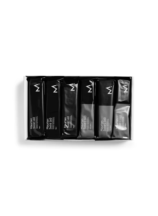 Solid 160 is Maurten’s bar — a go-to fuel source for the in-between moments. The daily transitions — on the way to the pool, the track, the race, the trail-side break, or when heading home from training. Fueling made easy.